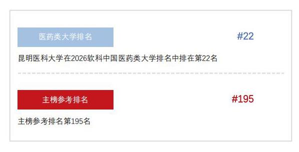 4月15日,2026软科中国大学排名正式发布。昆明医科大学在医药类大学榜单中排名位列全国第22位,较2025年提升2个位