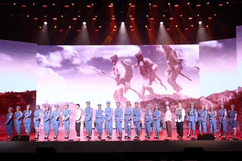 晚会第二篇章通过舞蹈、看照片 讲故事、舞台剧、音乐剧等形式,展现了在伟大抗战精神的指引下,中华民族在强国建设、民族复兴的道路上勇毅前行,实现了从站起来、富起来到强起来的伟大飞跃,以艺术形式生动描绘了昆医人将个人理想融入民族复兴伟业,传承红色薪火,在乡村振兴、志愿服务支教中书写报国篇章。