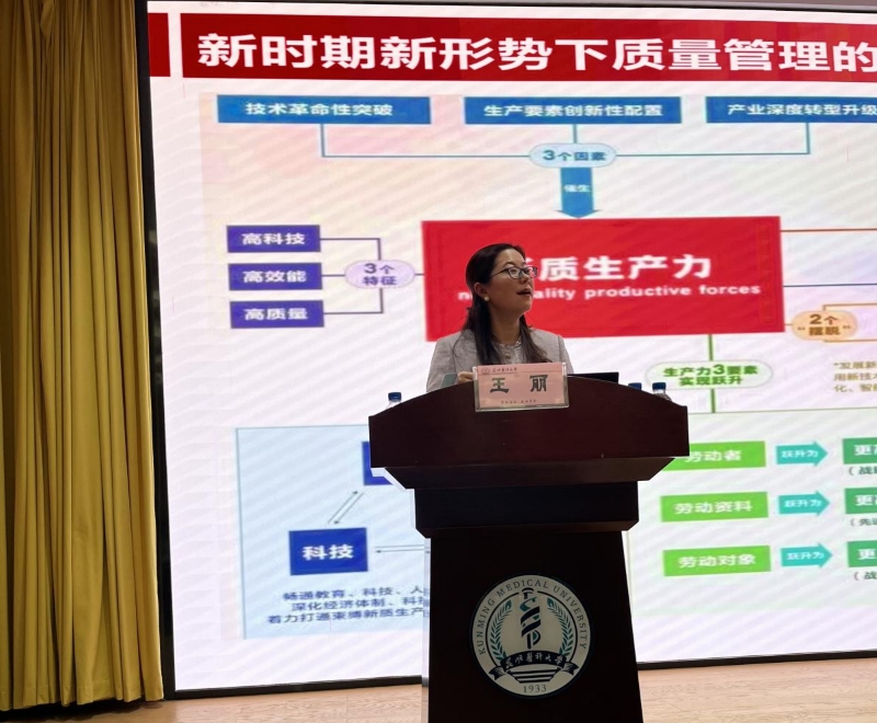 王丽老师从国家战略与行业趋势双重视角切入,既紧密围绕党的二十大报告中“制造强国、质量强国”的战略部署,又深度结合云南省“3815”战略中推动质量管理数字化融入区域发展大局的具体要求,清晰点明了“数字经济已成为核心竞争力”的时代背景。分享中,王丽老师引用鲜活的实际案例,系统阐述了数字化时代质量管理模式的变革路径、创新方向、面临挑战及应对之策,并向新时代大学生提出殷切期望:既要扎实抓好学习与工作质量,科学做好职业规划,始终坚守质量生命线;也要主动拥抱技术变革,持续推动技术与管理创新,以过硬的科技素养赋能成长,在数字化浪潮中坚定方向、行稳致远。