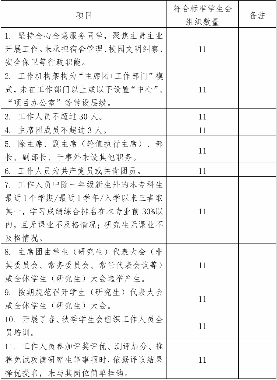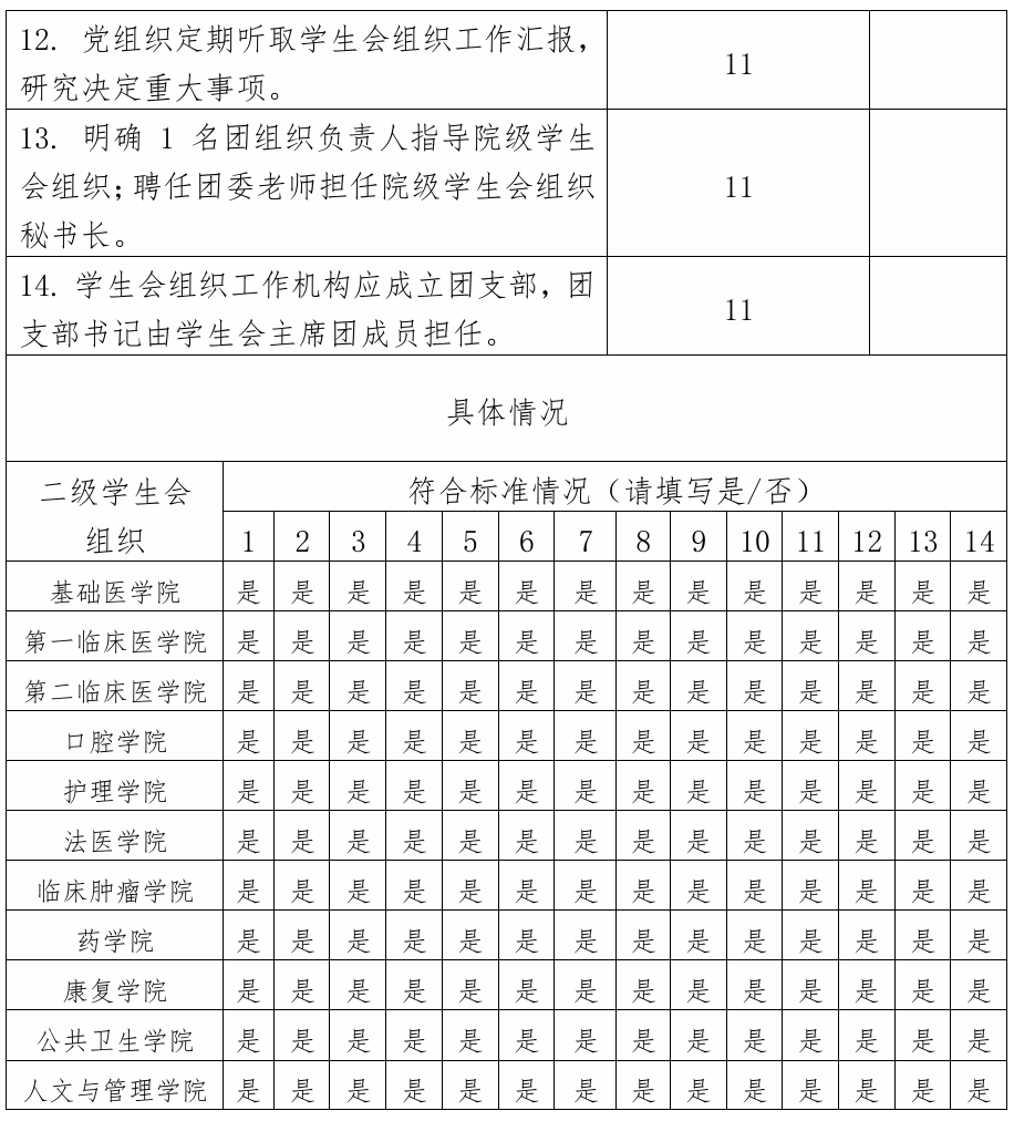 (二)二级学生会组织(含二级院系、书院、分校区等学生会、研究生会)改革自评表