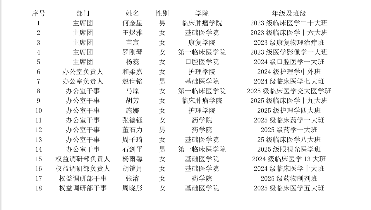 为落实共青团中央、教育部、全国学联联合下发的《关于推动高校学生会(研究生会)深化改革的若干意见》,并结合《关于巩固高校学生会(研究生会)改革成果的若干措施》文件要求,接受广大师生监督,现将我校学生会2024—2025学年学生会改革情况公开如下: