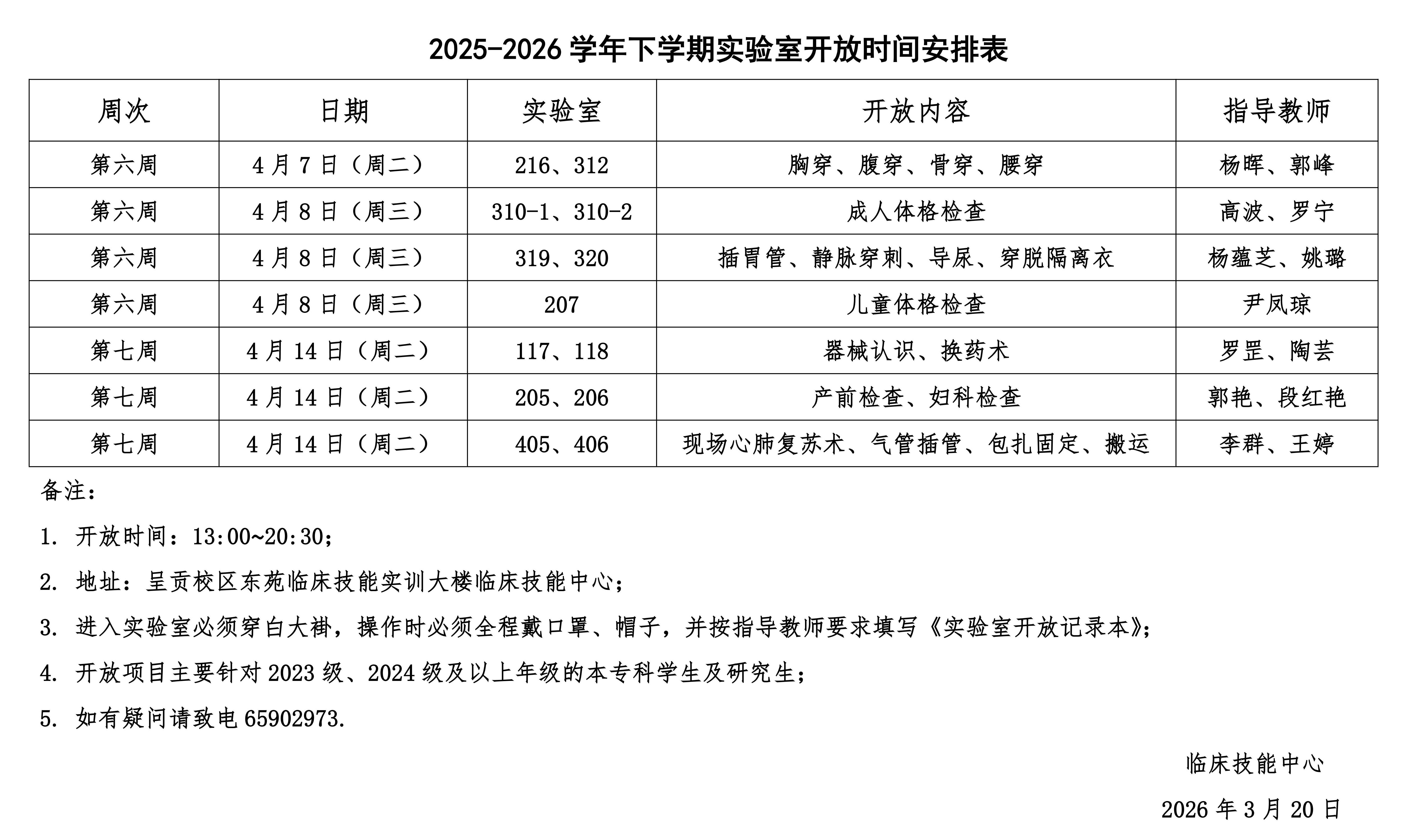 2025-2026学年下学期实验室开放安排表