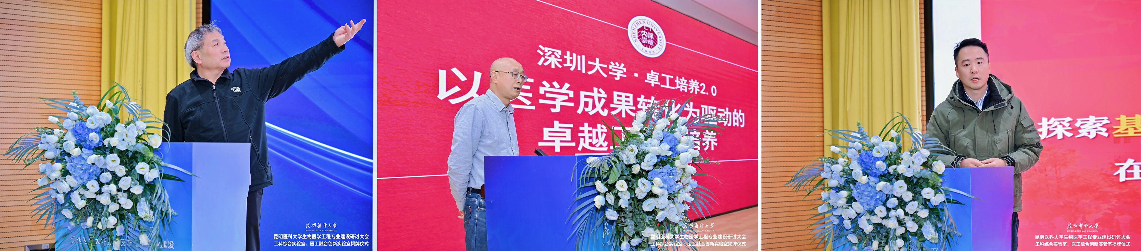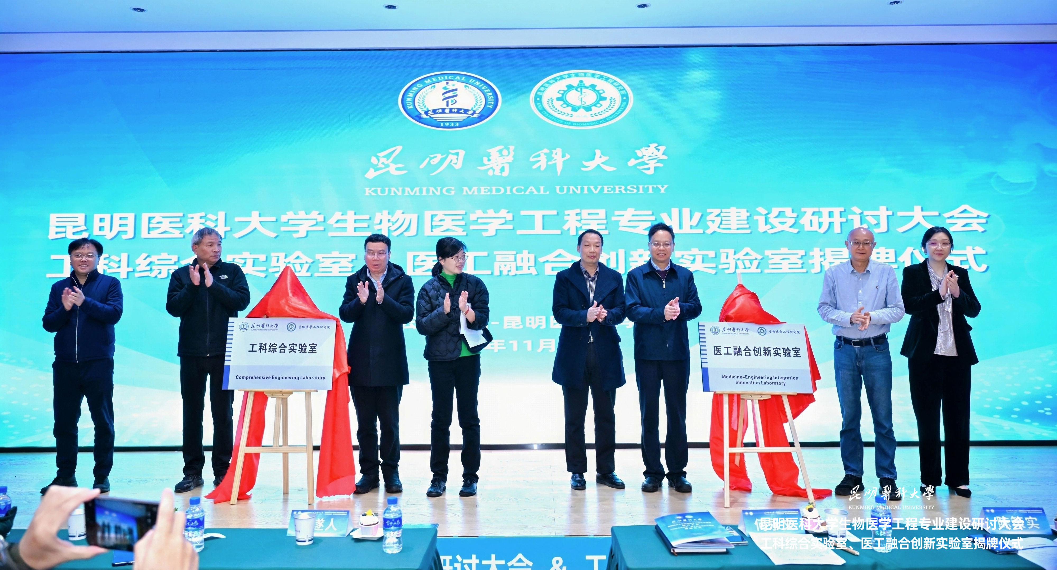 会议期间,何永文副校长、陈策实院长、王金德处长共同为专家颁发聘书,聘请他们担任昆明医科大学教育专家委员会-工学教育专家组专家。随后,专家与学校领导共同为研究院工科综合实验室和医工融合创新实验室揭牌。