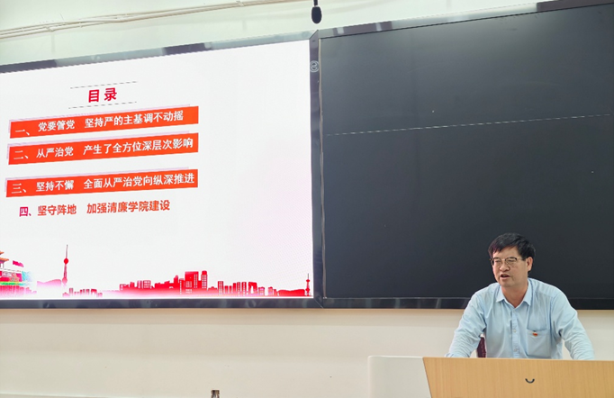 学院党委书记张有福以《深入推进全面从严治党 加强清廉学院建设》为题讲授专题党课,并向全体学员提出三点期望:第一,系统研读党的创新理论,夯实理想信念根基;第二,坚持知行合一,积极主动作表率;第三,绷紧纪律之弦,严守培训规矩。努力做到人到、心到、行动到,以优良学风确保此次培训取得实效。