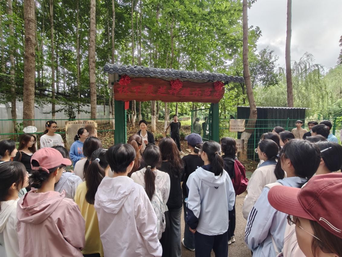 实践伊始,药学院唐丽萍教授向同学们介绍了示范园的建设背景与生态价值。她指出,示范园采用“林菌共生”的仿野生种植模式,充分利用林下空间,模拟灵芝的自然生长环境。这一项目不仅为灵芝种植研究提供了实践基地,同时也为本科生参与劳动实践,深化专业知识提供了新途径。通过唐教授的讲解,同学们深刻理解了示范园在推动产学研结合、践行“绿水青山就是金山银山”理念中的重要意义。