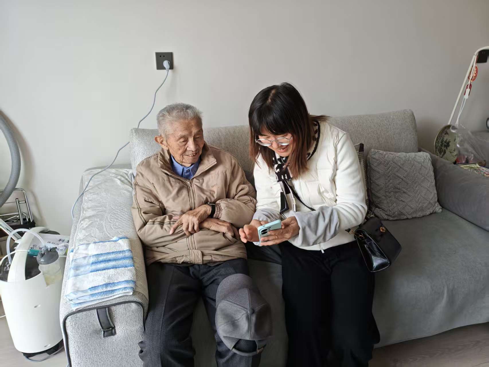 “老师,您打开微信,放大镜查找‘云岭职工’公众号……”电话这头,校工会杨学芳老师正一步步指导88岁的省级劳模蒋家雄教授的保姆完成线上认证。而在另一户退休劳模陈德昌教授家中,章可副主席、杨学芳老师亲自上门看望慰问老劳模为其完成认证工作。这种“能远程则不跑腿,需上门则零距离”的灵活服务,获得了老同志们的高度赞誉。陈德昌教授激动地表示:“工会想得非常周到,亲自上门帮我完成认证,让我真切感受到了学校对劳模的关心关爱和作为劳模的荣誉感。”认证工作完成后,作为原分管工会工作副院长陈德昌教授勉励年轻工会干部要加强学习提高服务本领;要深入职工群众了解职工群众所思所想,为职工群众排忧解难。