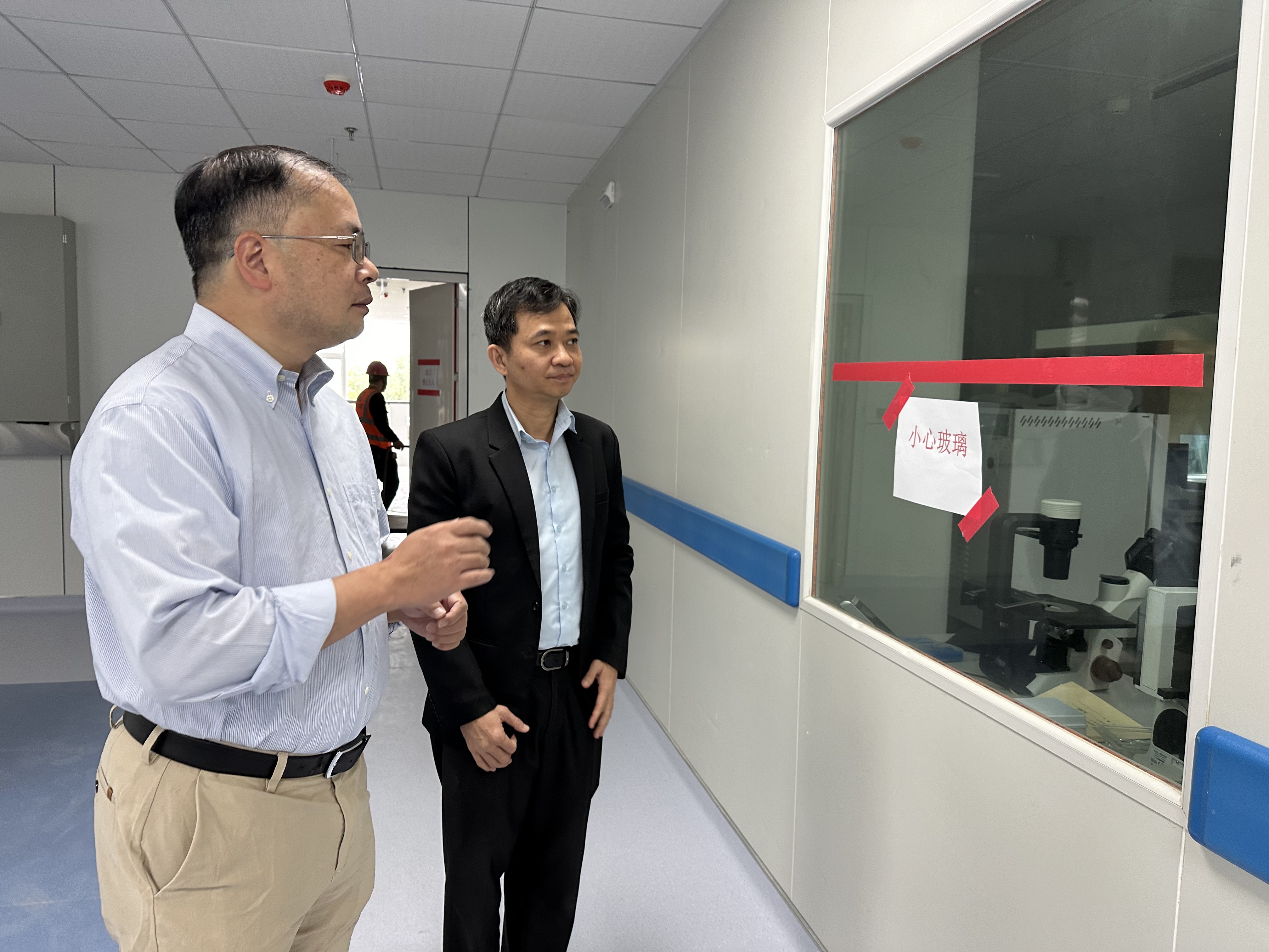 Rothmony EANG首先参观了我院正在改造建设中的云南省天然药物药理重点实验室,郎靖瑜向其详细介绍了改造项目的目标和建设进展情况,指出重点实验室改造是学校为了对接“健康中国”战略和“双一流”建设目标而投入的重大基础设施建设项目,以“交叉融合、开放共享”为核心,重点布局人工智能辅助药物设计和分子靶点筛选平台、现代化药理药效评价平台、云南特色真菌和药用植物化合物研究平台。同时,规划了药学大型仪器共享平台、细胞培养室及标准化P2+实验室,旨在打造贯穿药物研发全链条的创新研发体系。Rothmony EANG对改造工程表示高度赞赏并表示:“如此大力度的投入,充分体现了昆明医科大学对药学学科发展的高度重视与远见卓识。这座现代化的科研大楼,不仅是一个物理空间,更是一个孕育重大创新成果的摇篮,必将极大地提升药学院的原始创新能力和竞争力。”