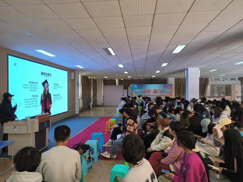 首先,由2022级营销班3位通过六级的同学给同学们分享了四、六级考试备考及复习的经验以及考试的技巧和方法。通过3位同学的分享让在场的同学们受益匪浅,为他们即将到来的英语考试提供了有力的支持。