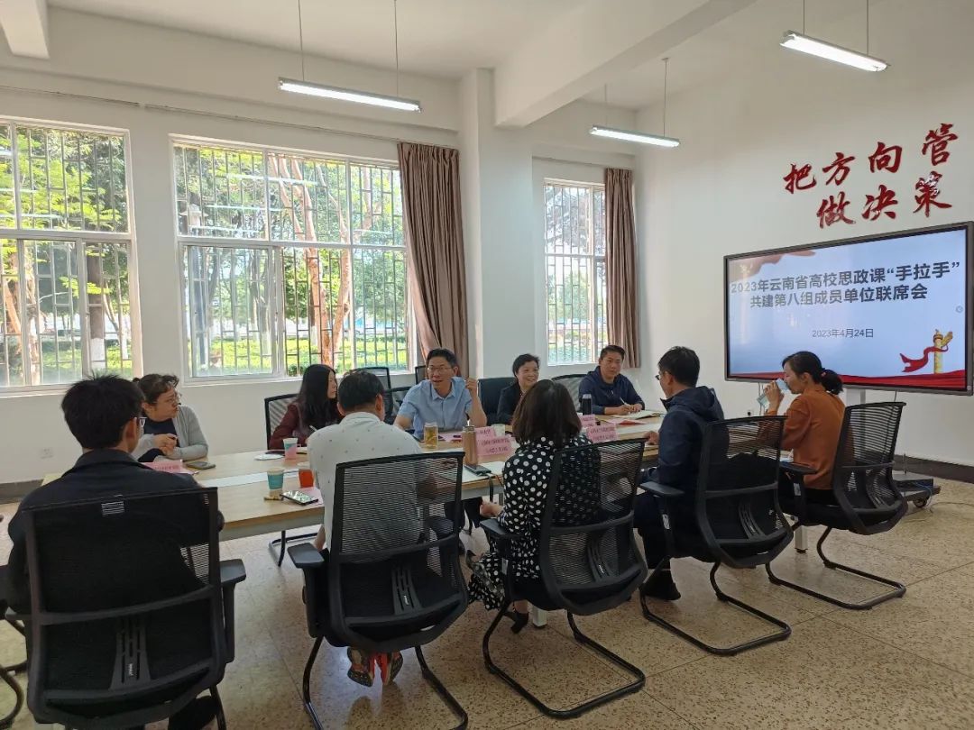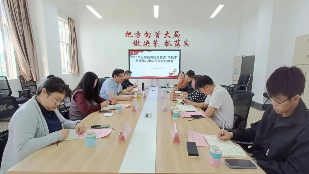 会议有三项内容。首先是全体参会人员集体学习了习近平总书记致云南大学建校100周年贺信,各兄弟院校教师表示要认真学习贯彻习近平总书记贺信精神,全面贯彻党的二十大精神和党的教育方针,紧扣高校思政课立德树人主渠道作用的发挥,投身思政课改革创新,为党育人,为国育才,为促进民族团结进步,培育服务边疆区域经济社会发展的建设者和接班人作出更大的贡献。其次,会议商议并决定2023年思政课“手拉手”第八组共建年度工作将聚焦思政课教学质量的提升,在年度内组织集体备课会和开展现场教学活动。最后,会议研究安排了本周五开展张桂梅先进事迹报告会的具体工作。