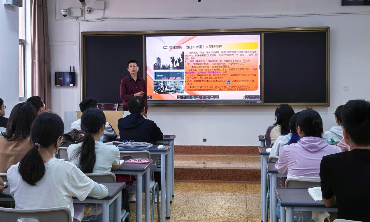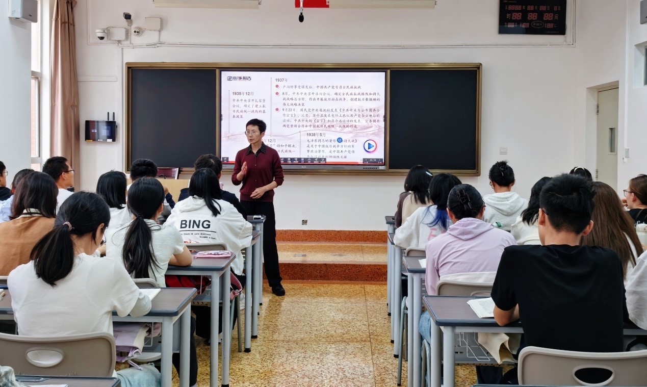 徐绍琼以“纪念抗战胜利,坚定民族信念”为主题,围绕“铭记历史,正义必胜”“民族壮举,浓墨重彩”“精神丰碑,永不磨灭”“珍爱和平,开创未来”四个方面展开系统讲授。授课中,首先通过回顾中国人民抗日战争的伟大历程,引导学生深刻认识抗战胜利的历史意义,进一步坚定“正义必胜、和平必胜、人民必胜”的信念;接着,重点结合云南在抗战时期的历史贡献,讲述滇缅公路、驼峰航线以及国立西南联合大学的教育传奇等内容,帮助学生认识云南人民在民族危亡时刻的英勇担当;第三部分着重阐释抗战精神的深刻内涵,鼓励医学生把这种精神转化为专业学习与未来从医的实践动力,勇担健康中国建设的时代使命;第四部分强调珍惜来之不易的和平,激励学生胸怀家国理想,把个人成长与民族复兴紧密结合,勇于担当时代责任。