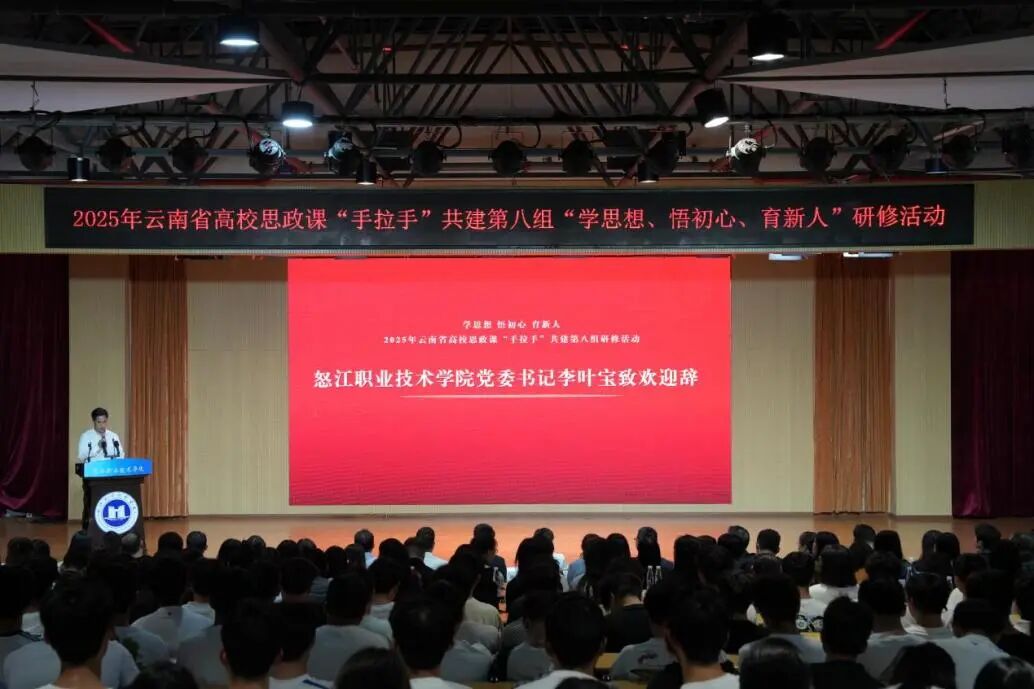 为深入学习贯彻习近平新时代中国特色社会主义思想,全面落实立德树人根本任务,推动全省高校思政课高质量发展,深化大中小学思政课一体化建设,10月24日至25日,由昆明医科大学牵头、怒江职业技术学院承办的云南省高校思政课“手拉手”共建第八组“学思想、悟初心、育新人”主题研修活动在怒江职业技术学院顺利举行。来自全省9所高校的思政课教师代表齐聚怒江,通过专题报告、研讨交流、教学展示、实地考察等形式,共研思政育人新路径,共谋协同创新新发展。