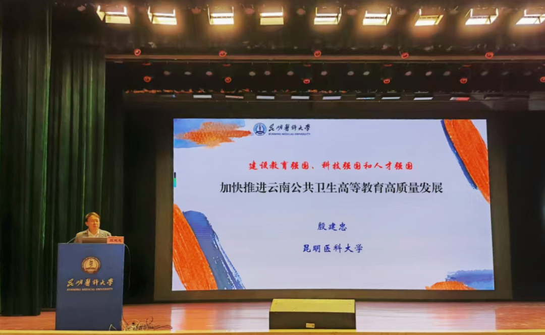 9月21日上午,昆明医科大学党委常委、副校长殷建忠以“建设教育强国、科技强国和人才强国——加快推进云南公共卫生高等教育高质量发展”为主题,为公共卫生学院2025级全体新生讲授了一堂深刻而富有启发的思政课,帮助同学们锚定成长方向、明晰专业使命。