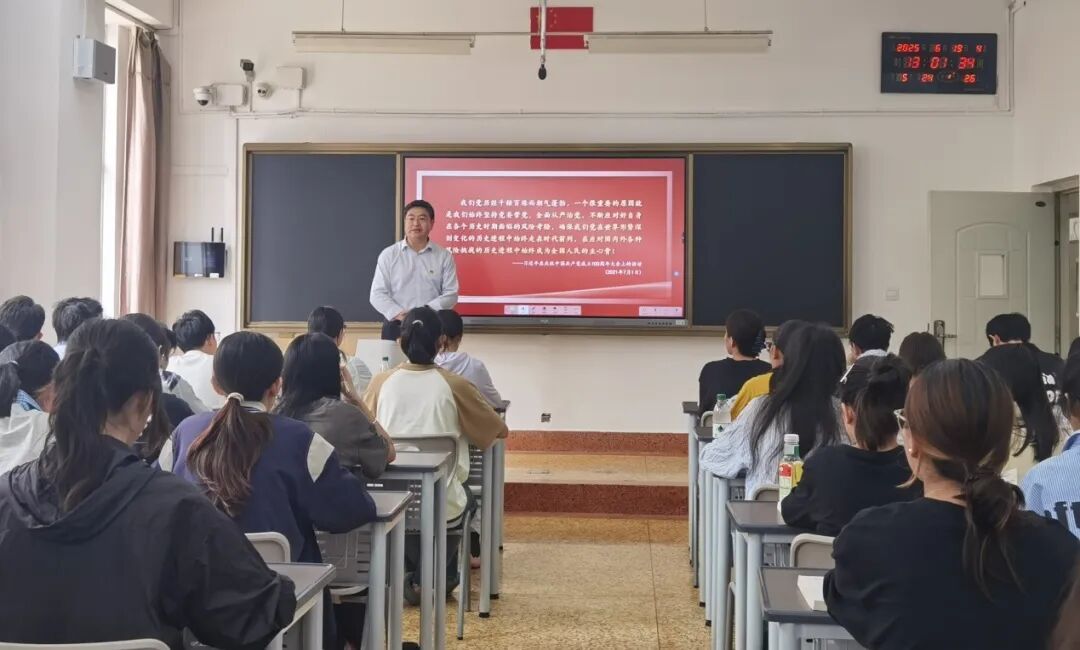 2025年6月19日,学校党委常委、纪委书记、监察专员祁顺华走进思政课堂,为2024级卫生检验与检疫班同学讲授了《习近平新时代中国特色社会主义思想概论》课程中的“全面从严治党”专题内容。