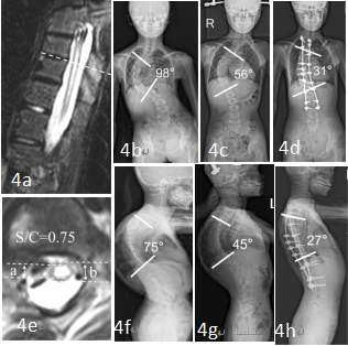 研究团队创新性地采用术前牵引联合一期后路截骨矫形术的治疗策略,通过术前颅-股骨牵引、颅重力牵引等个性化牵引方式,术中结合脊柱截骨矫形术,实现了脊柱畸形的分阶段矫正。研究结果显示,无论患者是否合并 Chiari Ⅰ 型畸形、脊髓空洞大小如何,术前牵引均可为冠状面侧凸、矢状面后凸矫形提供50%以上的贡献率,有效降低术中矫形难度和神经损伤风险,因此术前牵引一期后路截骨矫形手术治疗SS-SM是一种安全有效的治疗策略。研究还明确了该术式的病例选择标准和技术要点,为临床治疗此类复杂脊柱畸形提供了重要参考与选择。