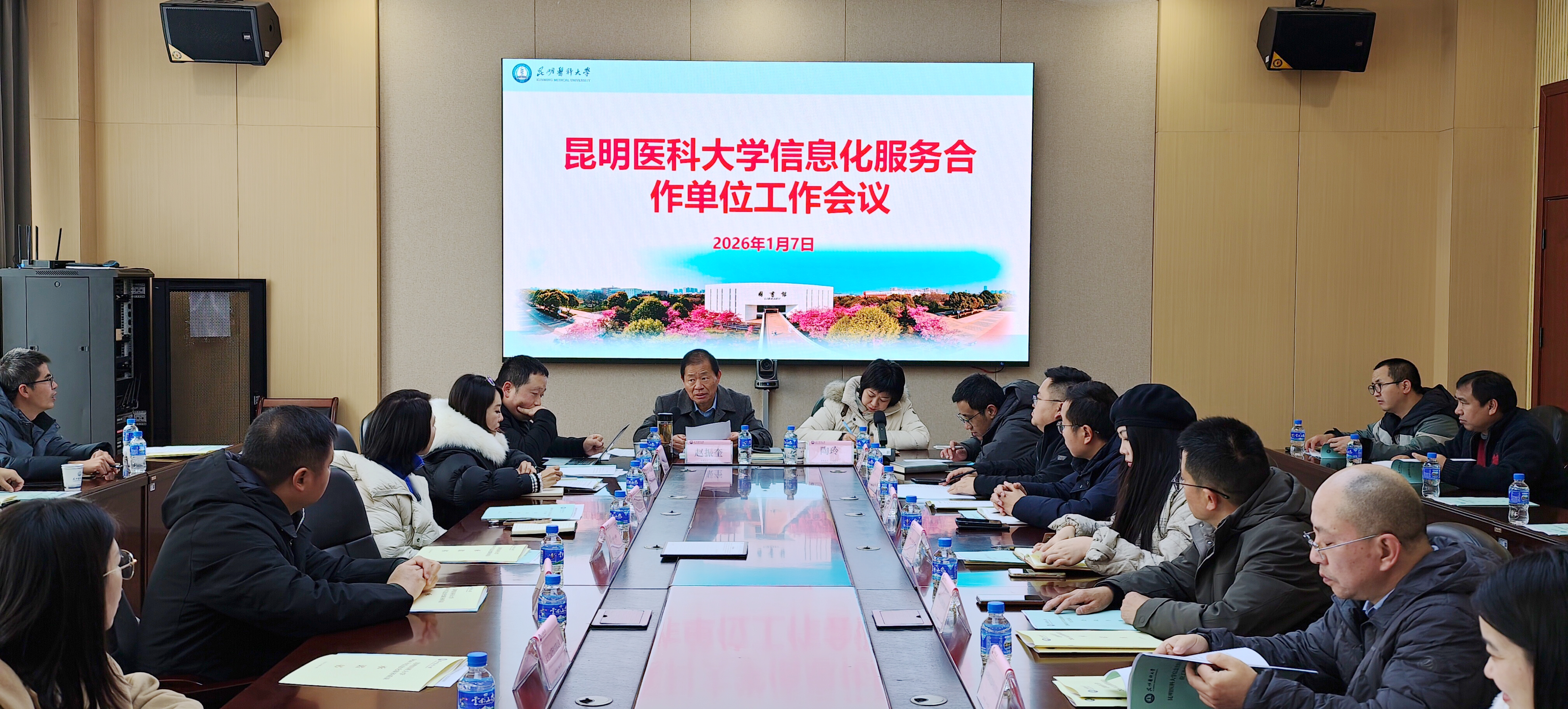1月7日,昆明医科大学现代教育技术中心组织召开信息化服务合作单位工作会议。会议以“规范信息化服务流程、强化服务质量管控、筑牢网络安全防线、推进合作单位星级服务考评工作”为主题。18家信息化服务合作单位负责人,学校党委宣传部负责人以及现代教育技术中心全体人员参加会议。