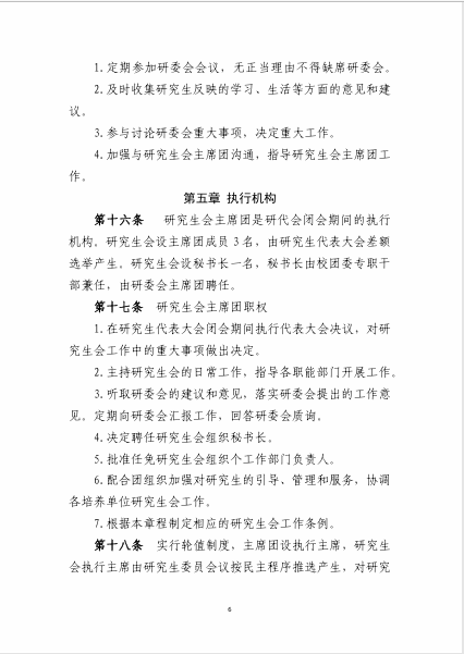 研究生会委员会下设主席团,主席团成员由研究生代表大会差额选举产生。
