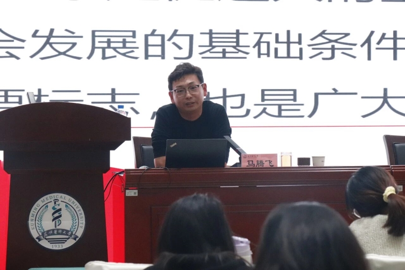 昆明医科大学马克思主义学院副教授马腾飞老师以《健康中国 护佑人民幸福生活》为主题授课,课程围绕健康中国建设的内涵及其实践路径展开,从重视预防、提升服务质量、深化医改、重视科技创新、坚持守正创新等八个方面进行了阐述,从思想上,实践上教导学员们认真学习专业知识,提高专业技能,将自身发展融入进健康中国的建设之中。