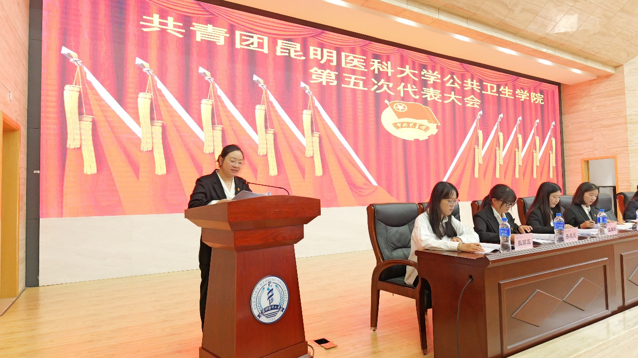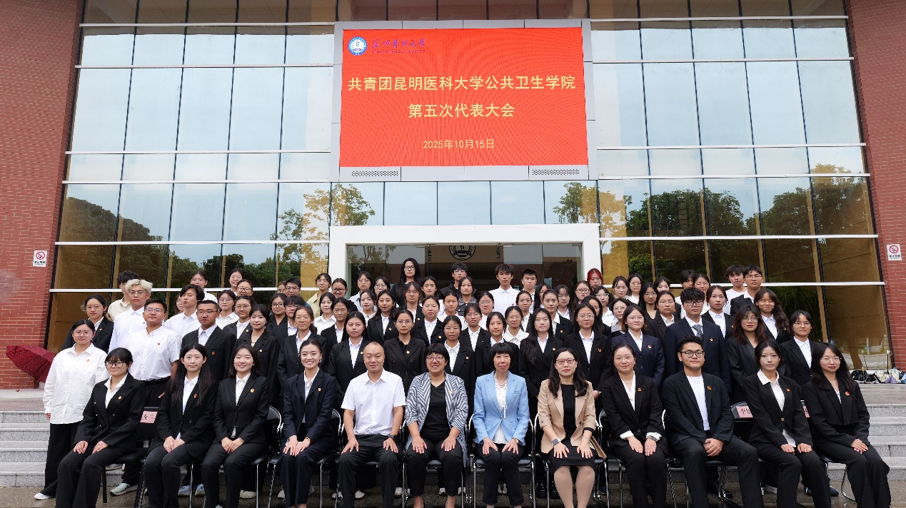 2025年10月15日,昆明医科大学公共卫生学院第五次团员代表大会在学术交流中心第一报告厅召开。昆明医科大学校团委书记皮筱娟、公共卫生学院党委书记蔡乐、党委副书记、副院长秦家碧(主持工作)、党委副书记董玲莉出席大会,公共卫生学院81名团员代表参加了会议。