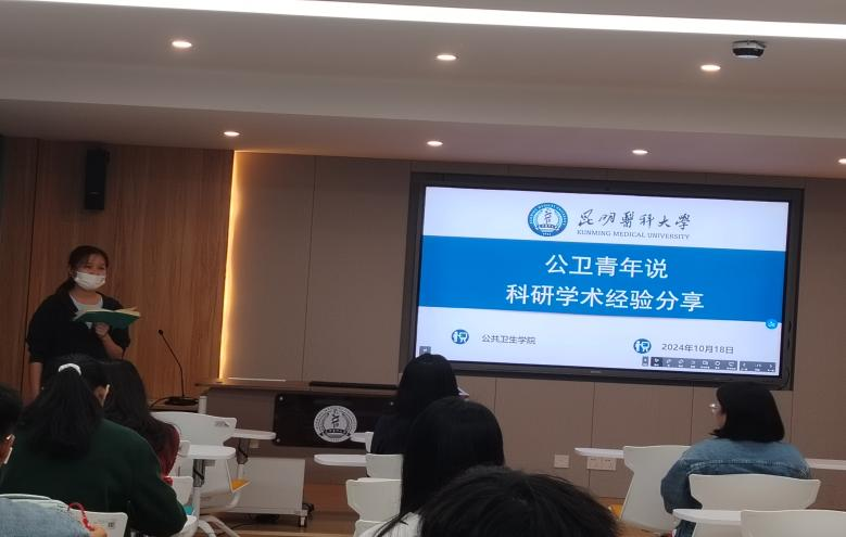 为帮助2024级新生更好地适应研究生生活,解决角色转变所带来的迷茫与困惑,坚定未来科研目标。昆明医科大学 “一站式”学生社区协同育人中心于2024年10月18日在博学园四五栋二楼多功能报告厅顺利举办“公卫青年说”——科研学术经验分享交流会。此次活动由来自2022级的张明妹、李鑫玉、赵红瑞三位同学主讲,50名2024级新生参加。