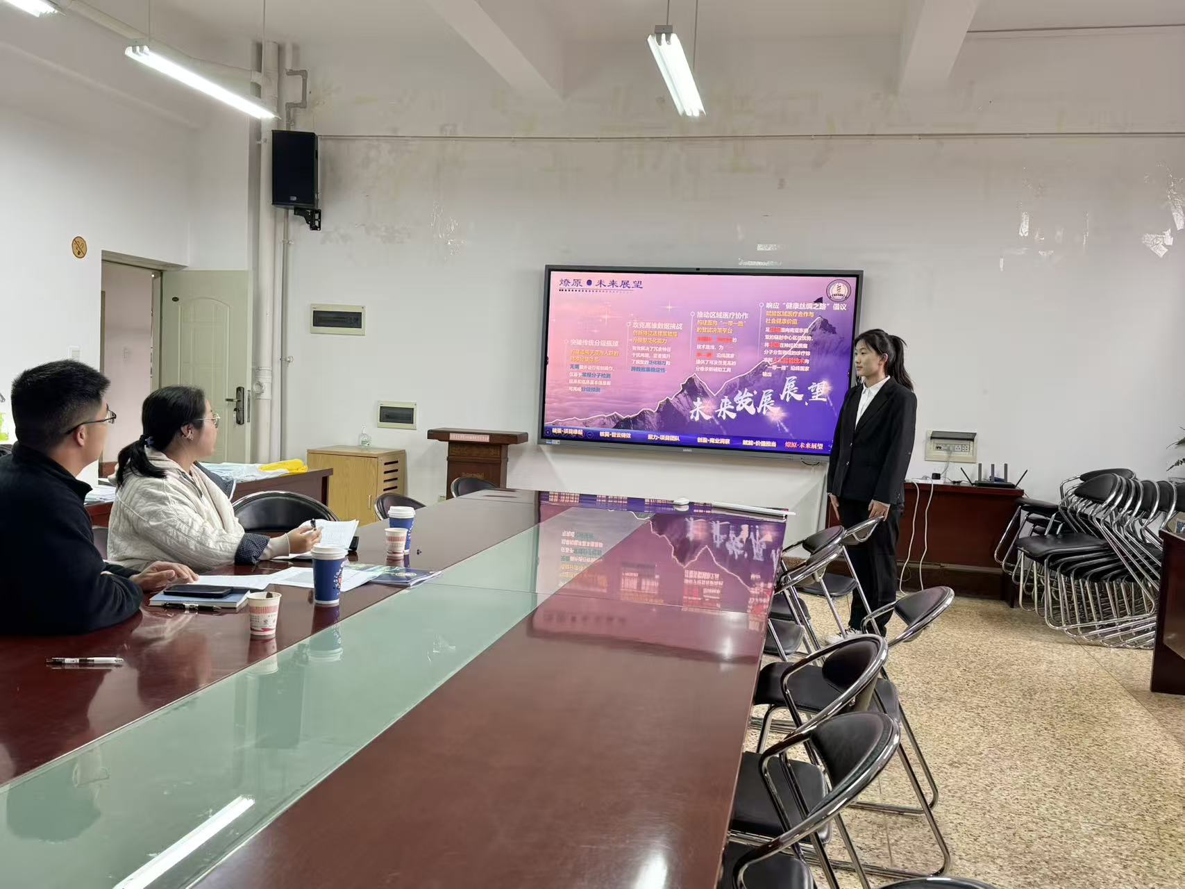 答辩现场,各参赛团队按抽签顺序依次上台,结合PPT,围绕项目背景、社会痛点、核心技术、社会价值、发展前景等内容进行6分钟阐述。随后,评委老师就项目核心内容进行5分钟提问,团队成员共同作答。展示过程中,各团队展现出扎实的专业功底与清晰的创业思路;评委老师则从项目可行性、创新性等方面提出专业指导与优化建议。