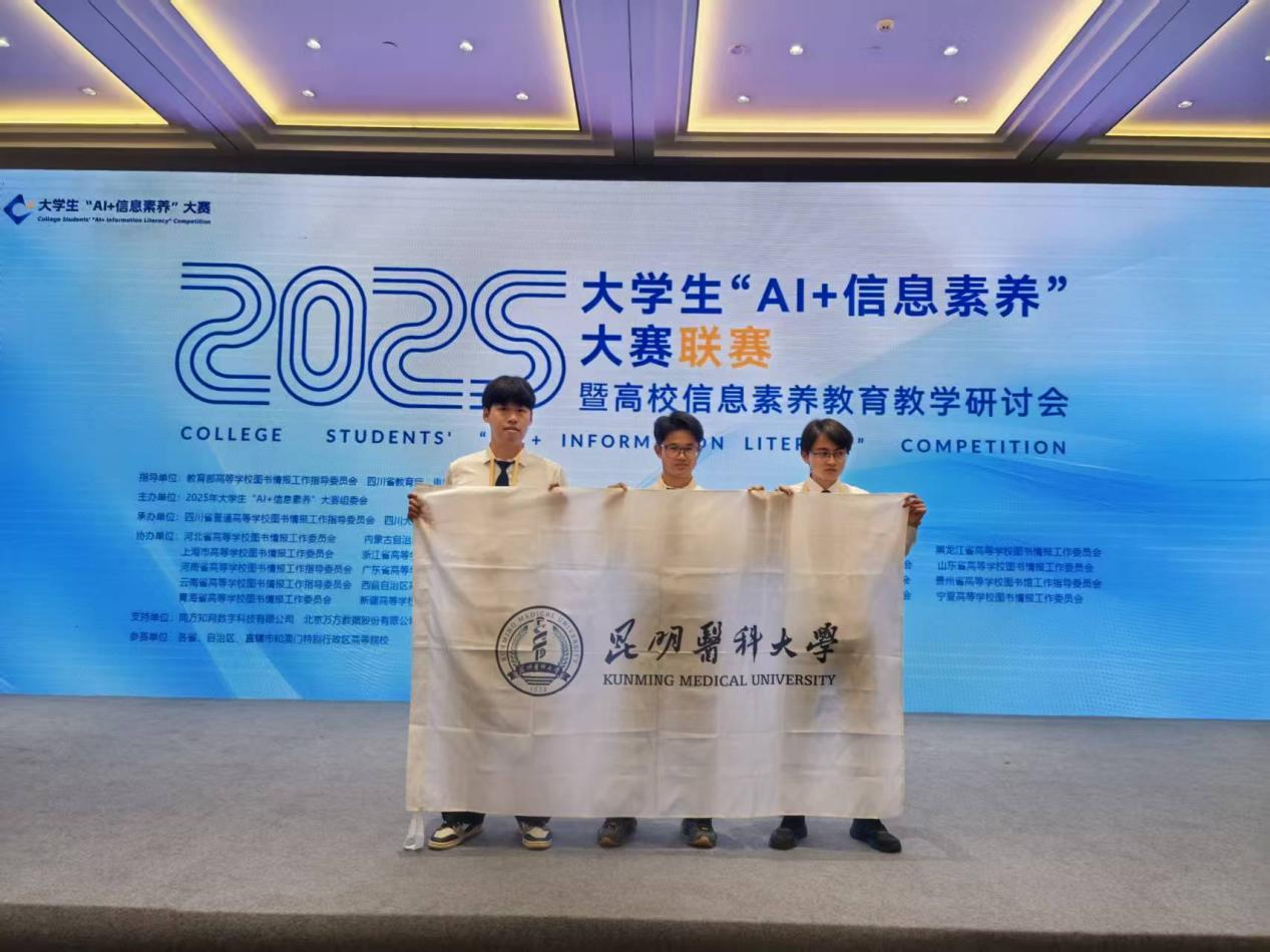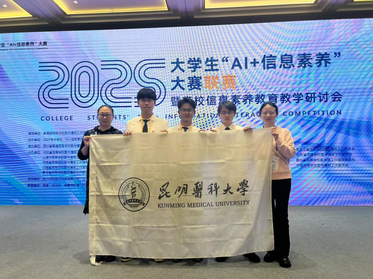 本次大赛取得的成绩,不仅是对昆明医科大学学生信息素养能力的肯定,也是学校长期重视信息素养教育、持续推进“AI+教育”融合发展的具体实践。学校将继续秉持“以赛促学、以赛促教”理念,进一步推动信息素养教育与人工智能技术的深度融合,强化学生信息素养培养与能力提升,为高等医学教育高质量发展贡献昆医力量。
