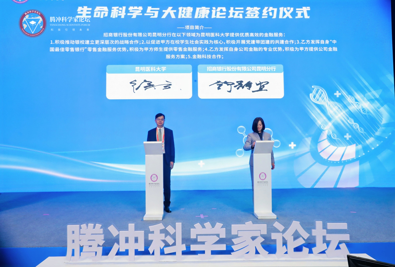 论坛期间,昆明医科大学党委常委、副校长徐立,科学技术处处长廖玉辉代表学校分别和招商银行股份有限公司昆明分行、江苏恒瑞医药股份有限公司签订了校企合作协议。
