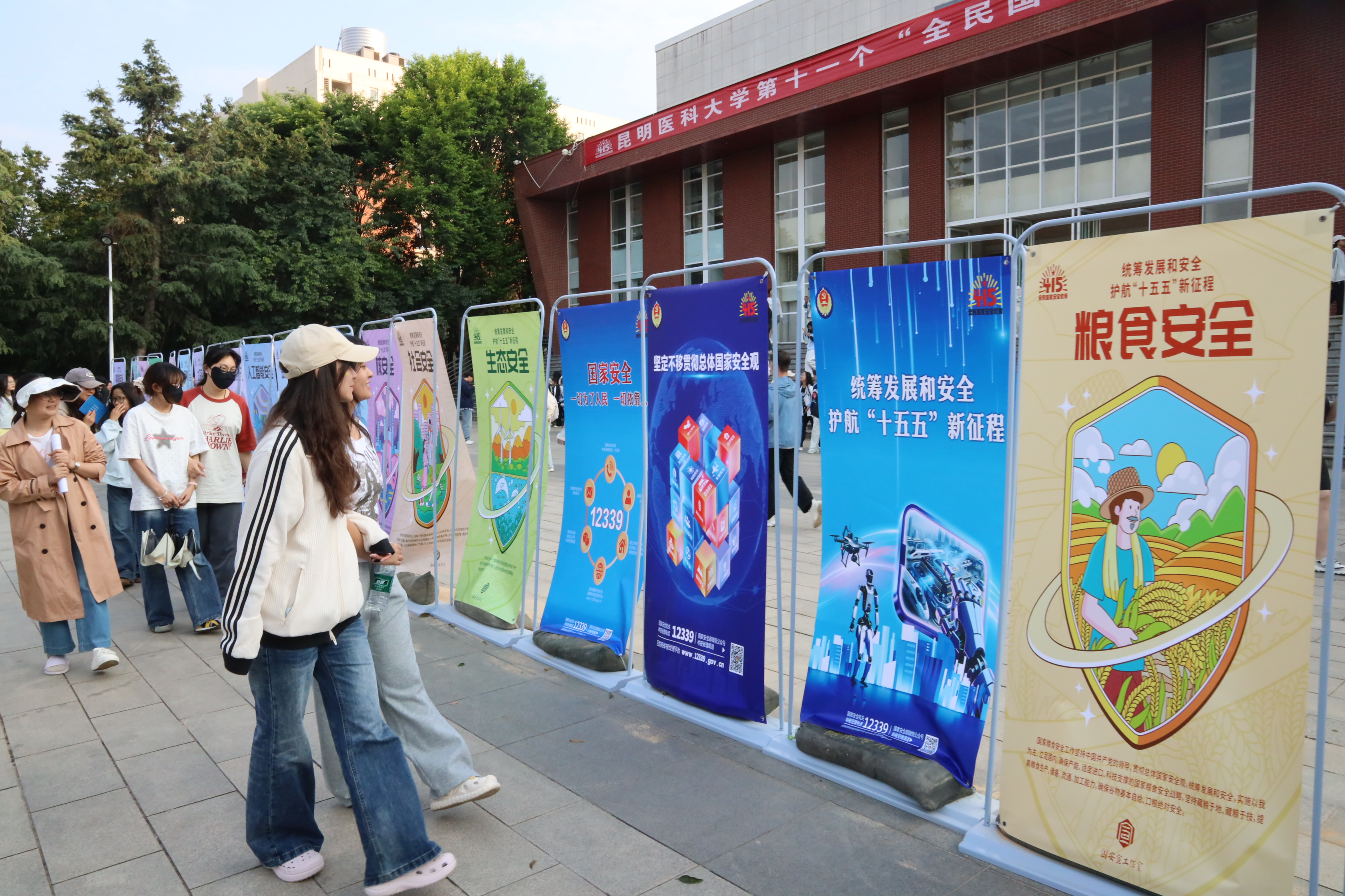 与会领导、嘉宾与师生代表共同参观了国家安全主题展板巡展。展览设置总体国家安全观、民族宗教政策、普法宣传、实验室与生物安全、保密安全5大板块,紧扣医科院校办学特色,重点突出生物安全、公共卫生安全、实验室安全管理等内容。