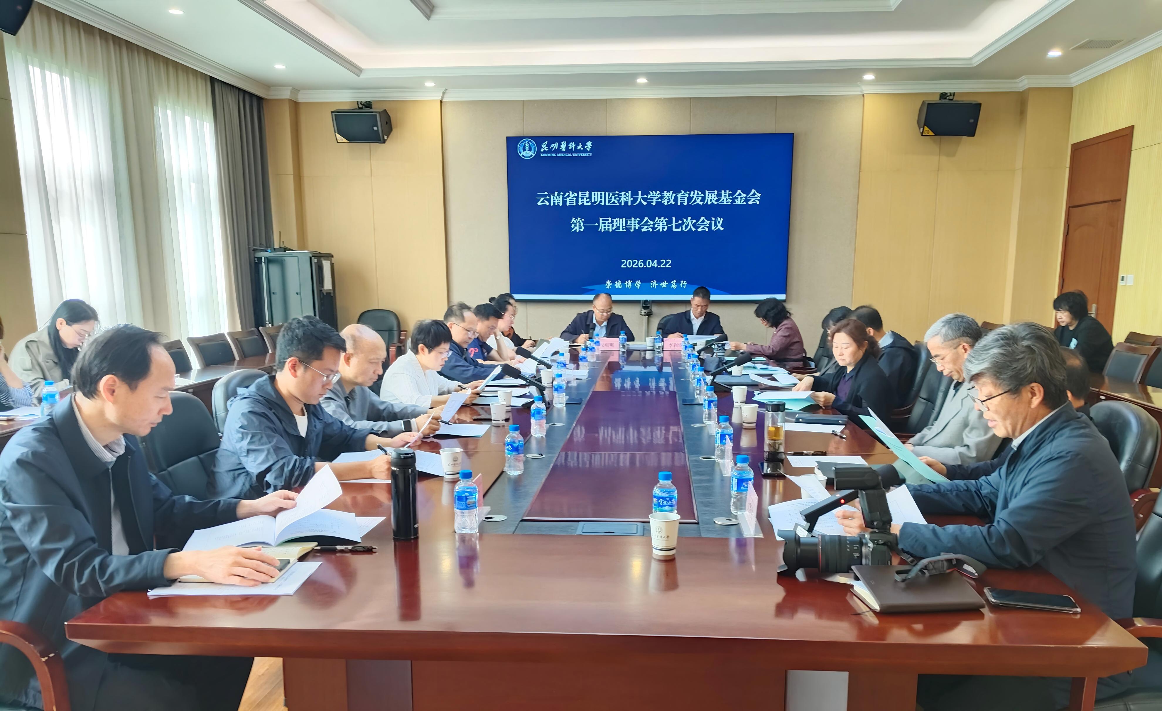 4月22日,云南省昆明医科大学教育发展基金会第一届理事会第七次会议在呈贡校区召开。学校党委常委、副校长吴红明、李利华出席会议。