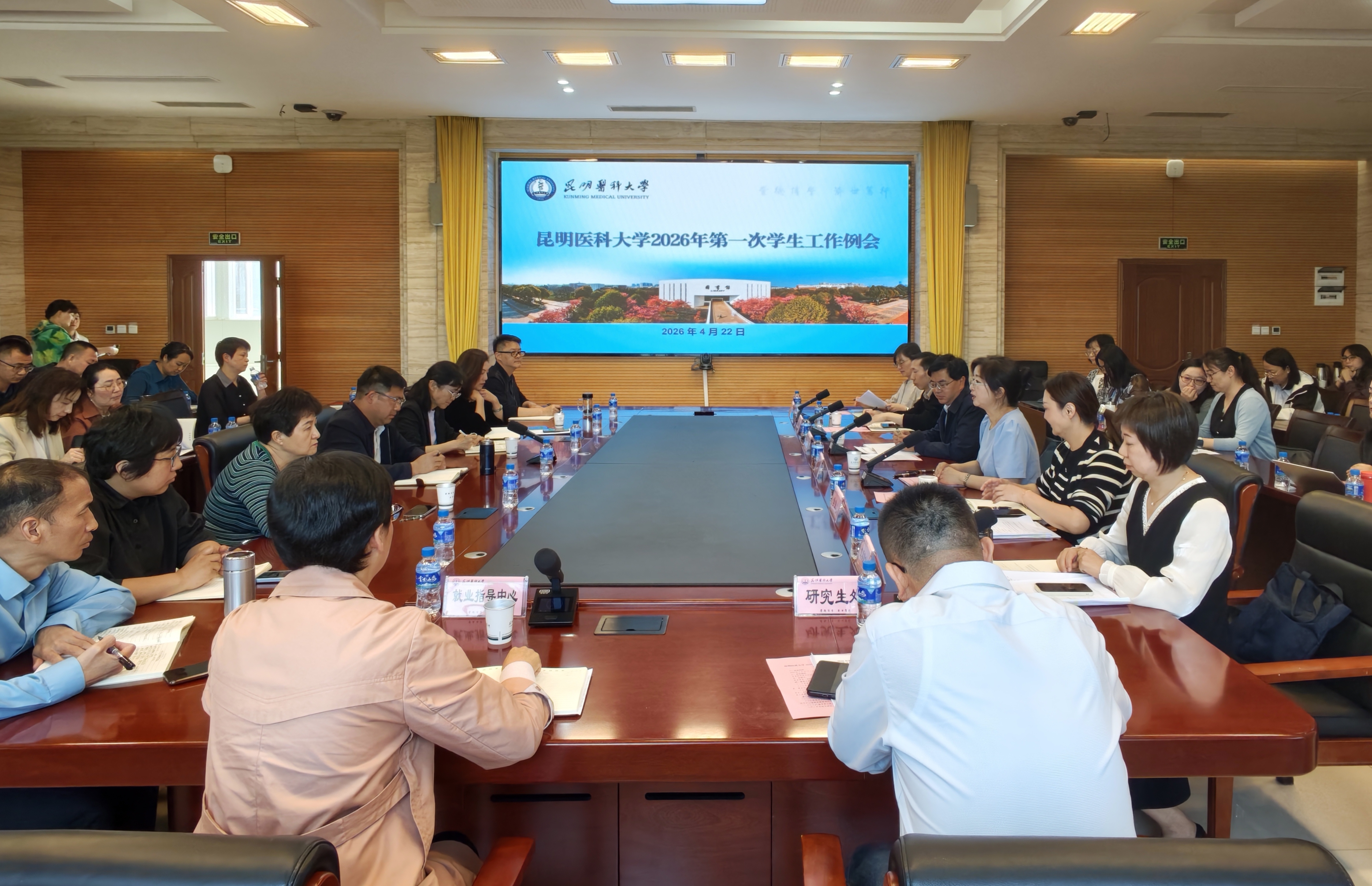 4月22日,昆明医科大学2026年第一次学生工作例会在呈贡校区召开。学校党委副书记徐立,党委常委、副校长奚春睿,党委学生工作部及各相关单位负责人,各学院分管学生工作副书记、学生党总支书记、学办主任及其他各在昆研究生培养单位相关负责人参加会议。