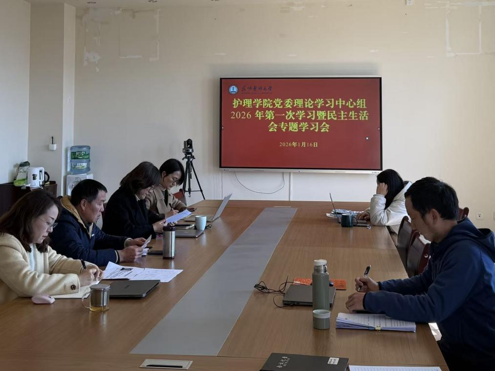 1月16日,昆明医科大学护理学院党委理论学习中心组2026年第一次集中学习暨民主生活会专题学习会在明德楼502会议室召开,学院党委副书记、院长卢玉林主持会议,传达学习有关内容并作总结讲话。