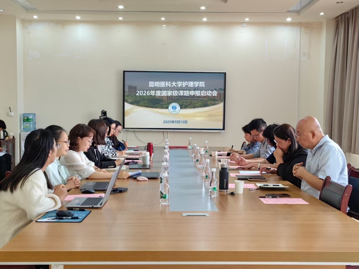 9月12日,护理学院成功召开2026年国家级课题申报启动会暨与中南大学湘雅护理学院专家团队研讨交流会。本次会议特邀研究生院院长聂胜洁、学报编辑部木丽仙教授、公共卫生学院何国忠教授、游顶云教授、昆明医科大学第二附属医院杨明莹教授等专家线下出席,并邀请中南大学湘雅护理学院冯辉教授团队线上参与。护理学院全体教师参加会议,会议由副院长杨倩蓉主持。