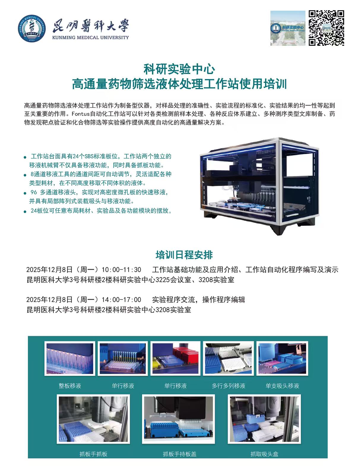 科研实验中心高通量药物筛选液体处理工作站使用培训