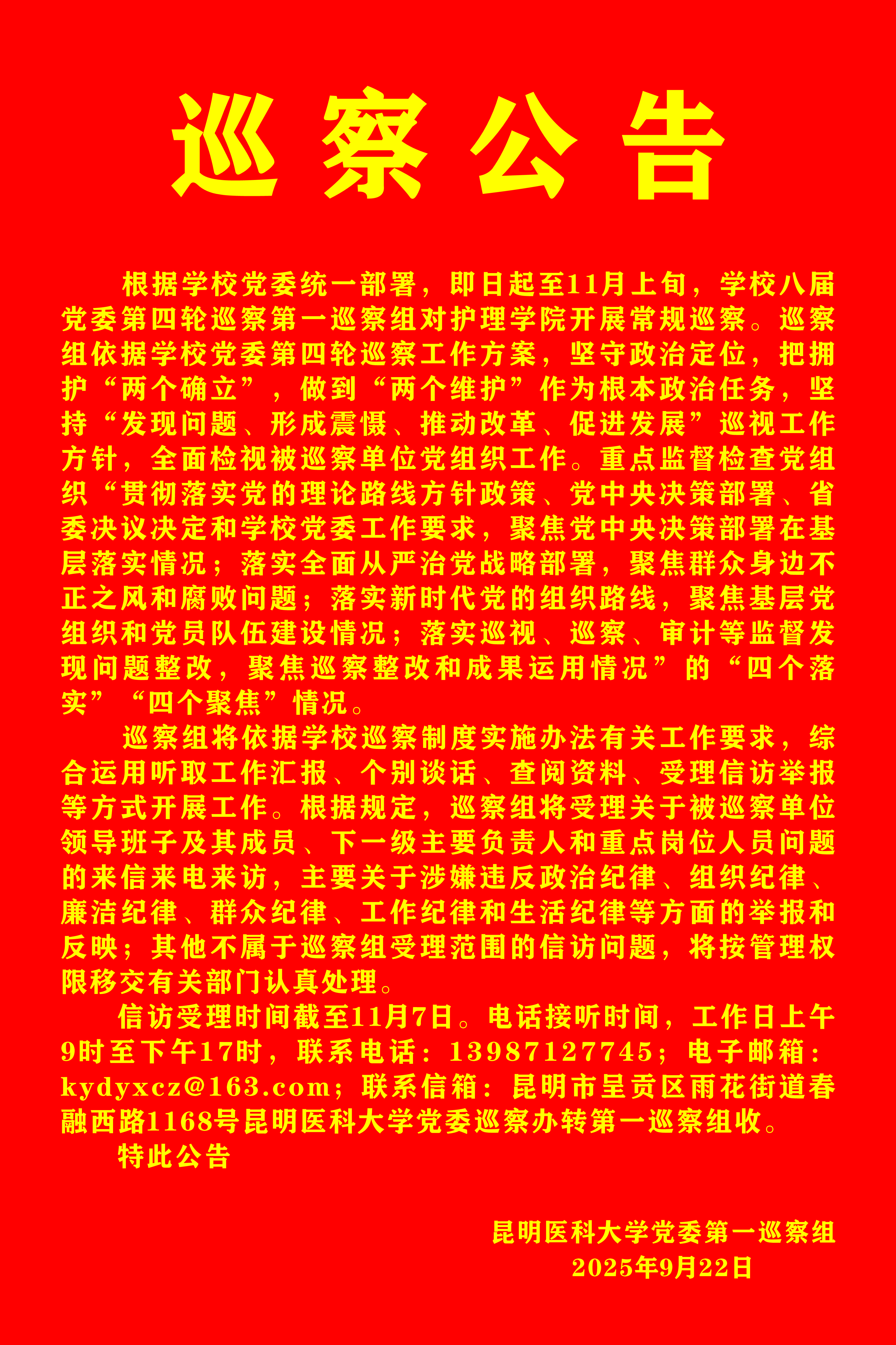 昆明医科大学八届党委第四轮巡察第一巡察组巡察护理学院党委反馈