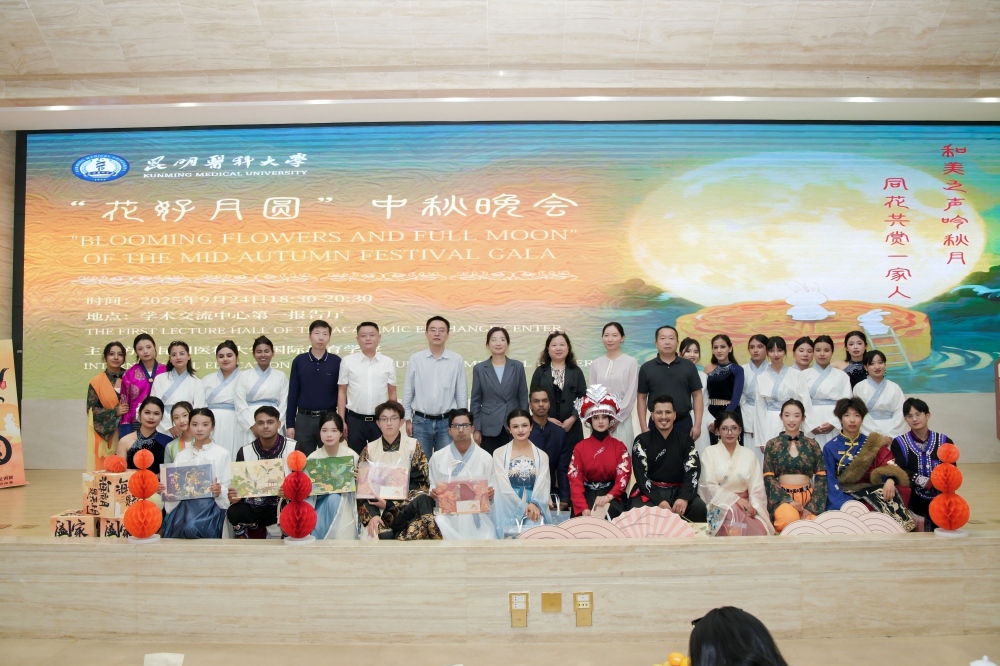 9月24日,2025年来华留学生“花好月圆”中秋节文化体验活动在昆明医科大学呈贡校区举办。学校党委常委、副校长奚春睿,党委统战部、人事处、学生工作(部)处、对外合作交流处、研究生处等职能部门负责人以及国际教育学院的全体师生参加了此次活动。